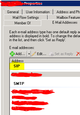 When Lync is enabled for a mailbox, you get an additional address type i.e. SIP in the email properties of a mailbox.