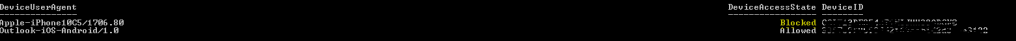 I ran the following command on exchange power shell to find out the device ID of the device that was in Blocked status. Make a note of that device id.