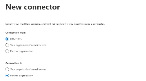 3. Under New connector, for Connection from, chose Office 365. For Connection choose Partner
