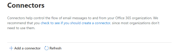 - Click Mail flow on the left Panel and then click Connectors – Add a connector