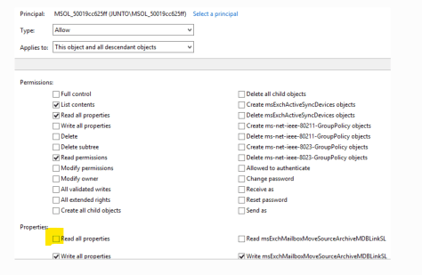 - Check “Read all properties” – OK – Apply – OK.