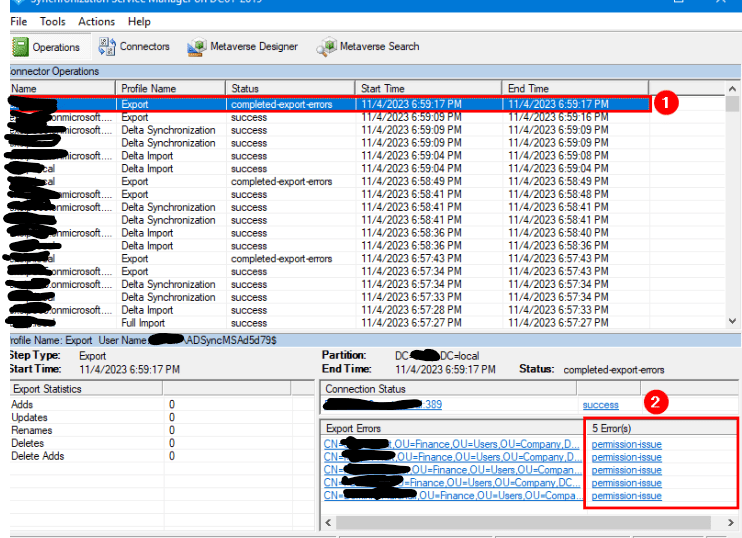 I opened Azure AD Connect Synchronization services and ran the sync and noticed there were permission errors.