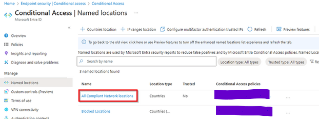 Once you have enabled these settings, the next step is to configure your Conditional Access policies to utilize the traffic policies. Alternatively, you can require users to connect to the Secure Service Edge (SSE) before accessing Microsoft 365 services. You’ll notice that a new Named Location has been automatically created for this purpose.