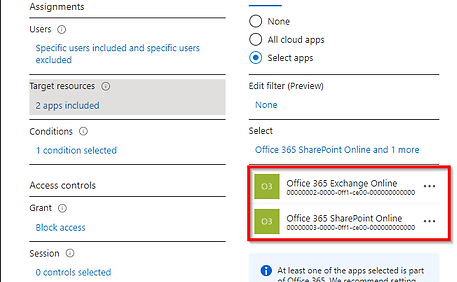 Following conditional access policy will block exchange online and share point for specific users unless they connect through SSE.