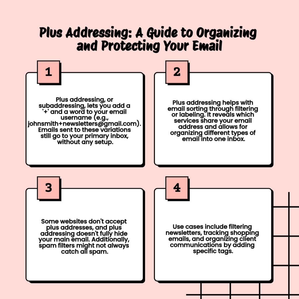 Plus addressing is a small trick with big benefits—organization, control, and insight into who’s using your email. It’s free, simple, and already built into many email services. Give it a try!