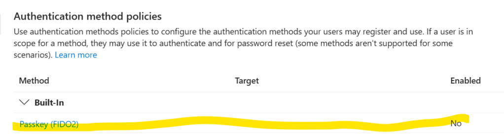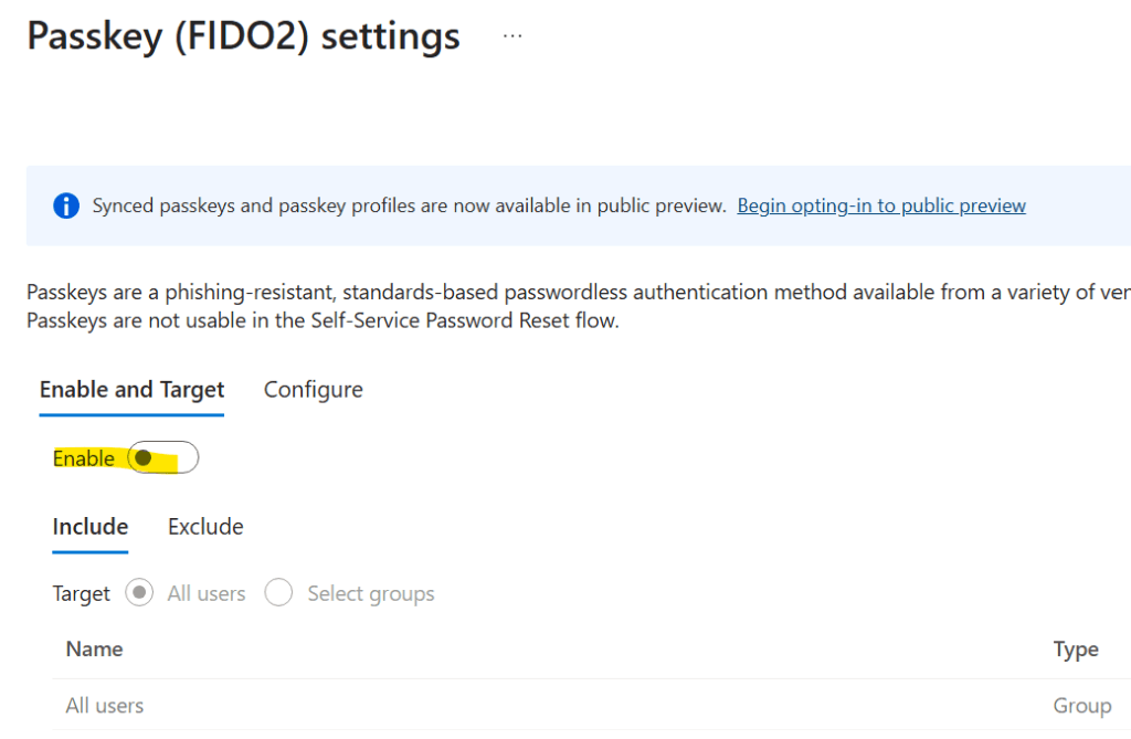 If you plan to use mobile-based passkeys, confirm Microsoft Authenticator preview settings are properly configured.