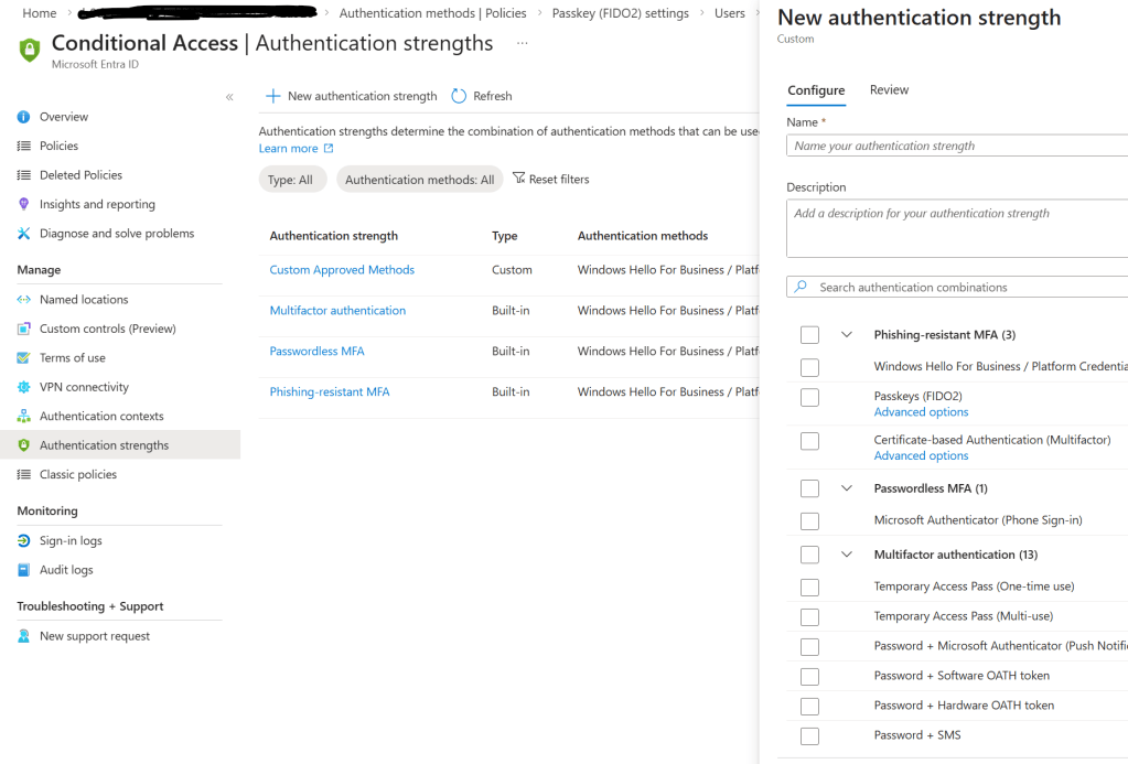 - Create a custom Authentication Strength that allows only phishing-resistant methods.