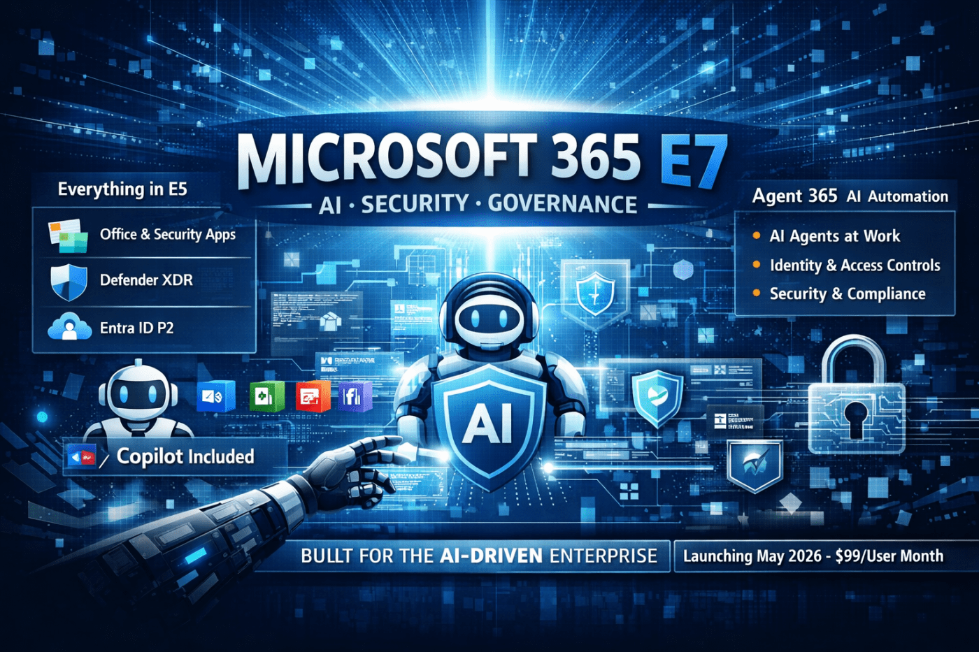Microsoft 365 E7 is Microsoft’s new top‑tier enterprise license, announced in March 2026 and launching 1 May 2026.
