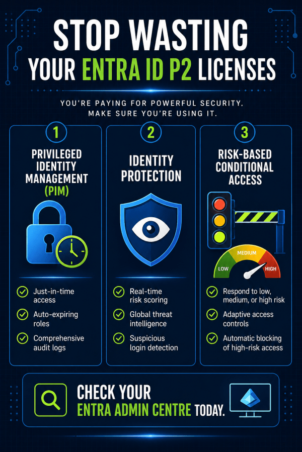 Most teams buy Entra ID P2, assign the licenses, and never touch the premium features. That's thousands wasted and your tenant left exposed. Here's how to actually use what you're paying for.